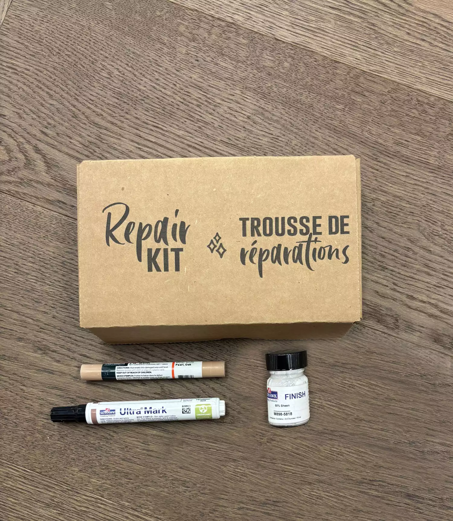 However, if you want to go one step further and conceal little scratches or cracks, fill small gaps between wood boards, and repair worn edges, Mirage offers exclusive Repair Kits that match the color of your flooring for a seamless touch-up.