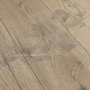 However, walking on flooring over time can cause surface-level dirt to get embedded in the wood grain or the joints between the wood boards. Dirt buildup may be slightly more prevalent on textured hardwood floors as the wood grain is open. But generally, flooring with this type of dirt will appear faded and slightly discolored over most of its surface.