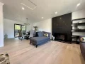 This modern home in Las Gatos, California features White Oak Bubble Bath Character Brushed hardwood flooring, installed throughout the main level and stairs in 7-3/4-inch-wide planks. The result is a seamless, light-filled interior anchored by a refined off-white tone infused with warm, creamy beige and subtle earthy accents. The brushed texture and natural character of the White Oak add depth and visual interest, allowing natural light, furnishings, and architectural details to shine.