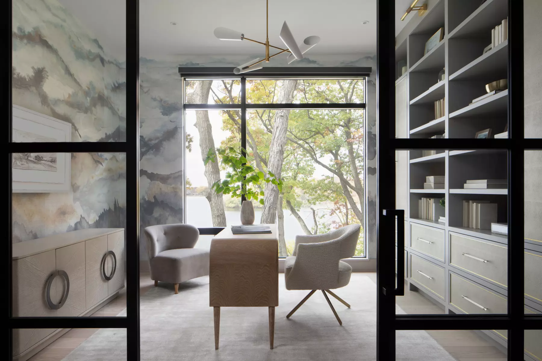 In this Tranquility Point, Wisconsin home, the eye is always drawn outward. Framed views, soft light, and clean lines create a home that feels connected to its surroundings and intentionally unhurried. Underfoot, White Oak Hula Hoop Exclusive Brushed hardwood flooring brings everything together with a calm, ecru-beige palette layered with warm neutrals and subtle gray undertones. Installed in 5-inch-wide planks, the floor doesn't compete for attention. Instead, it anchors the space, letting materials, textures, and natural light shift throughout the day. The result is not just cohesive, but atmospheric.