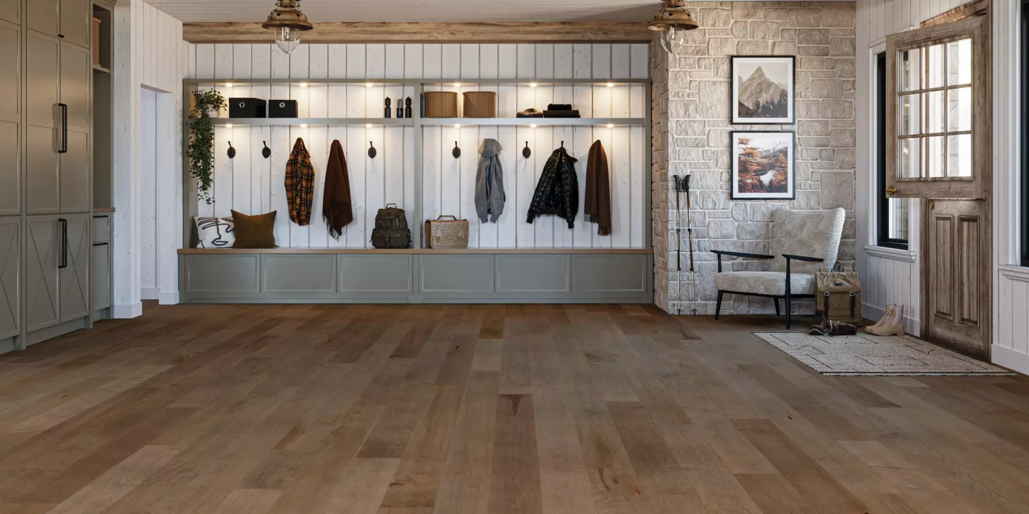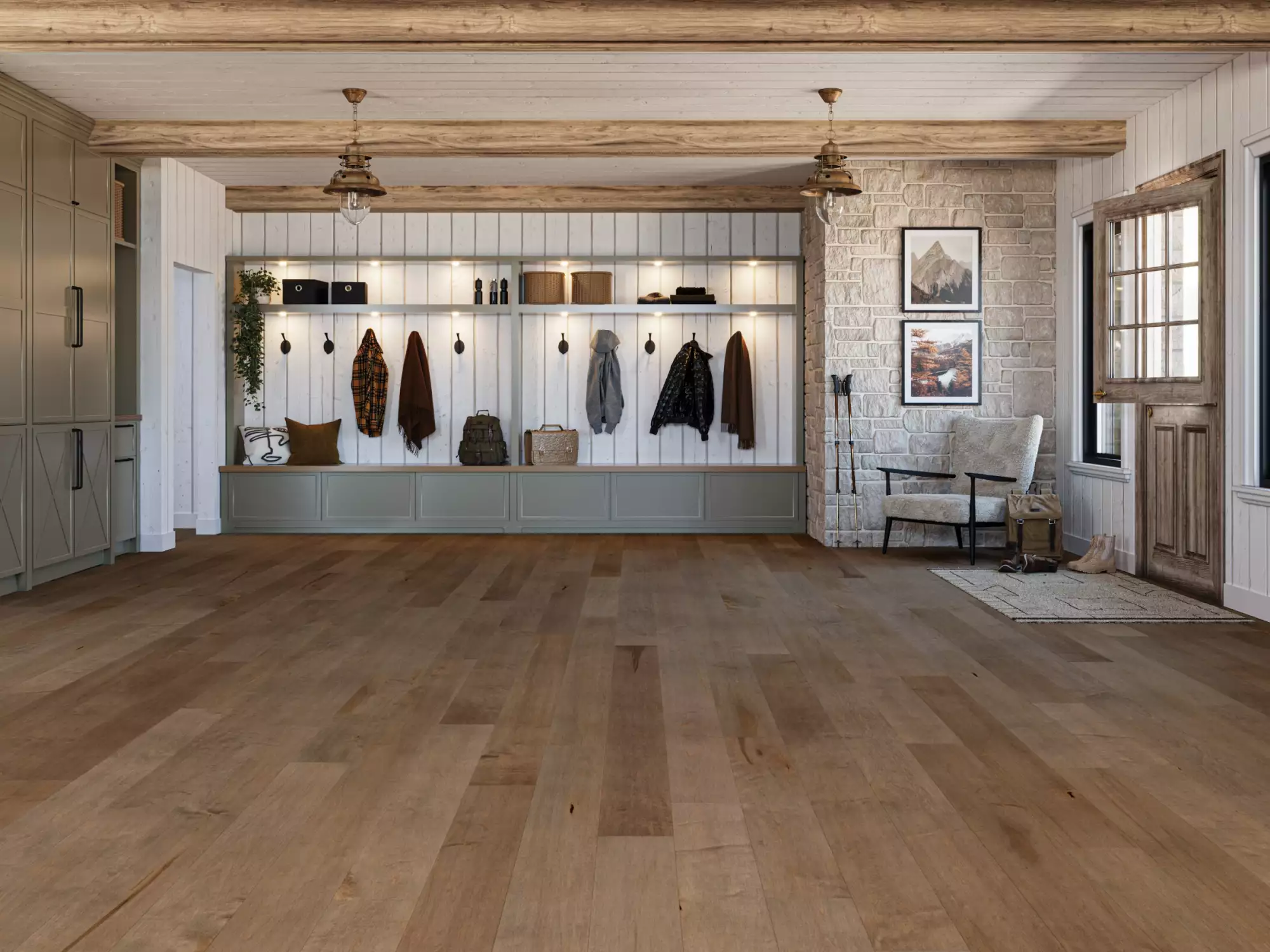 Wood planks with unlimited natural wood characteristics as pronounced color variation, open and closed knots, mineral streaks, surface holes, and other character or milling marks. The Character grade offers a look that nature gives us.