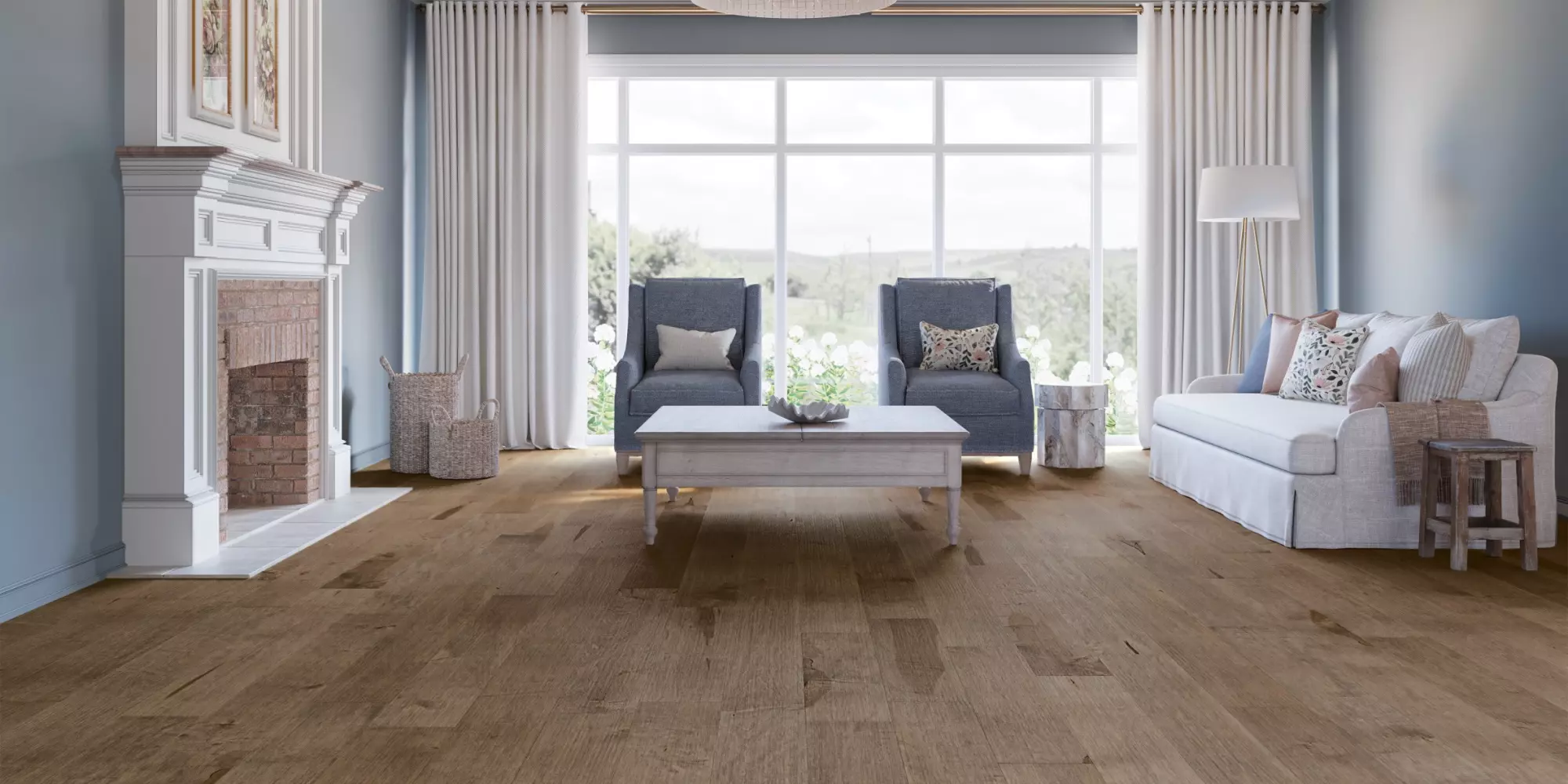 Wood planks with unlimited natural wood characteristics as pronounced color variation, open and closed knots, mineral streaks, surface holes, and other character or milling marks. The Character grade offers a look that nature gives us.