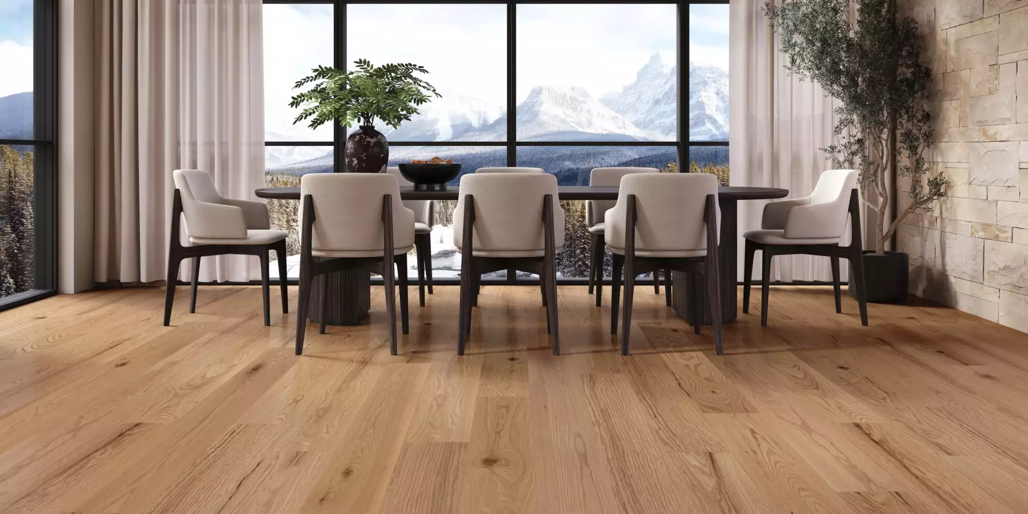 Radiate comfort and relaxation in your home with Oak Bow Valley. This natural hue inspired by the sunbaked reeds of Alberta's picturesque Bow Valley, embodies nature's tranquility. Featuring a range of natural wood tones, from light to medium shades of earthy brown, complemented by warmer undertones, Oak Bow Valley brings a sense of serene beauty to any space.