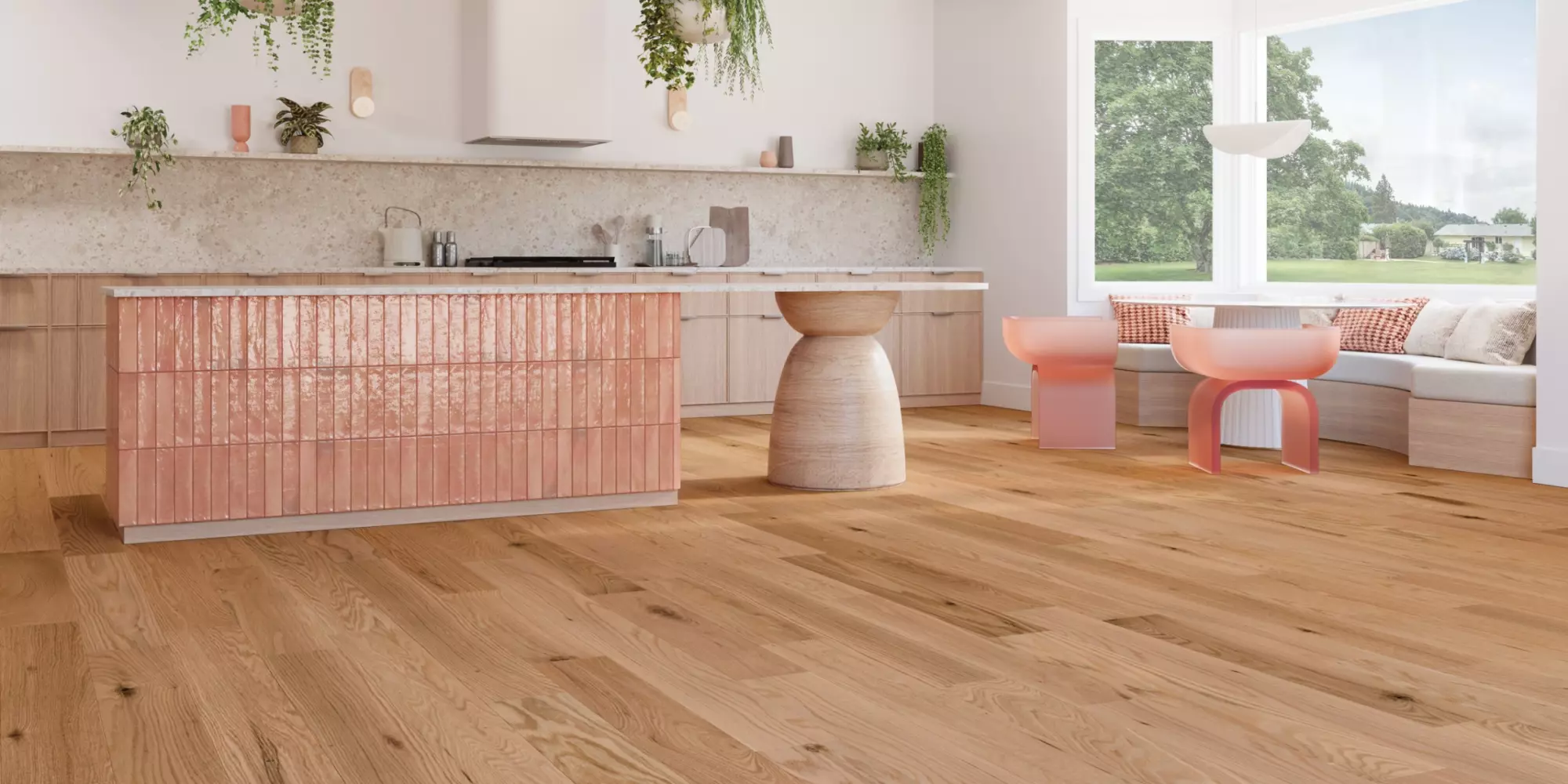 Bring warmth to your space with Oak Natural, a tanned beige with delicate peach undertones. This balanced hue harmonizes vibrancy and subtlety, standing out without overwhelming. Its deeper beige base, creamy accents, and subtle grey veins evoke a timeless, vintage feel. Radiating the warmth of a sunlit afternoon, Oak Natural adds elegance and comfort, complementing both contemporary and traditional interiors with effortless style.