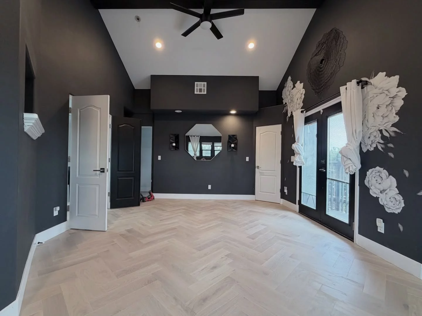 Herringbone White Oak Hardwood Flooring Transforms a Bold Primary Suite in Campbell, California Home