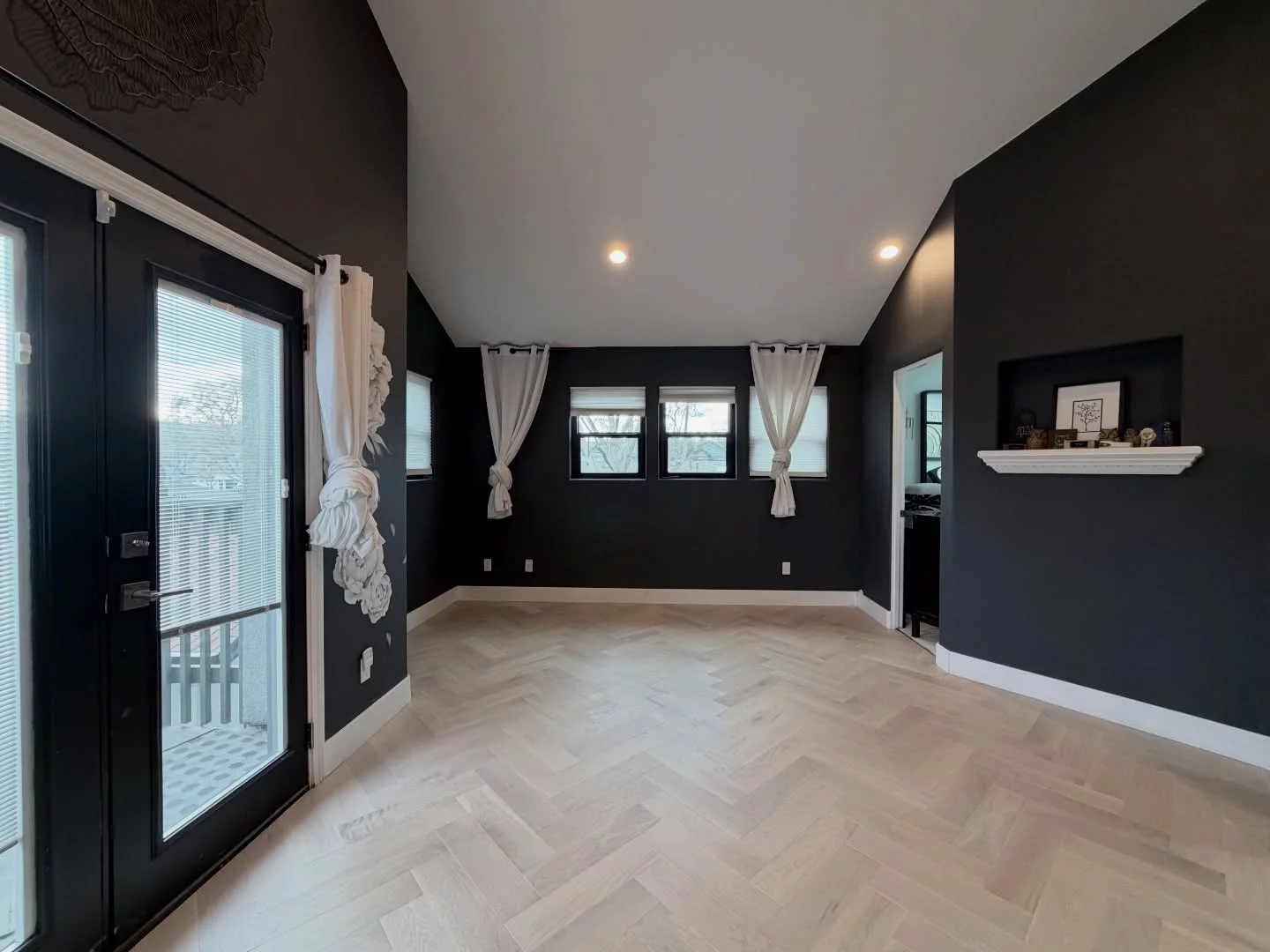 Completed by Van Briggle Floors, this project highlights how white oak herringbone hardwood flooring can elevate a bedroom into a statement space—layering warmth, pattern, and sophistication into every step.