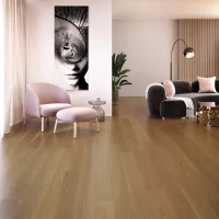 Elevate your home décor with the depth and dimension bronze-colored wood flooring exudes. The White Oak Amelia Brushed hardwood floor boasts subtle variations in sophisticated light brown tones, creating a casual and inviting atmosphere perfect for contemporary design styles. Balance the warm tones of the natural wood with cool shades to achieve a soft, soothing look.