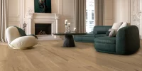 Delight your senses with the White Oak Eleanor Brushed hardwood floor, a rich golden-brown that introduces a show-stopping earthy element to a space. The natural grain adds layers of detail to any décor, and its light brown hue looks stunning against warm reds, earthy greens, teal, or eggplant. The organic texture of the wood perfectly complements modern and traditional materials.