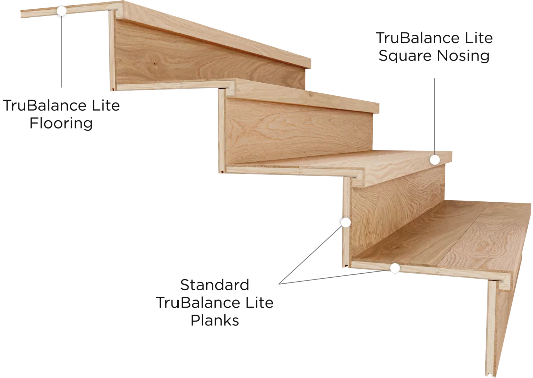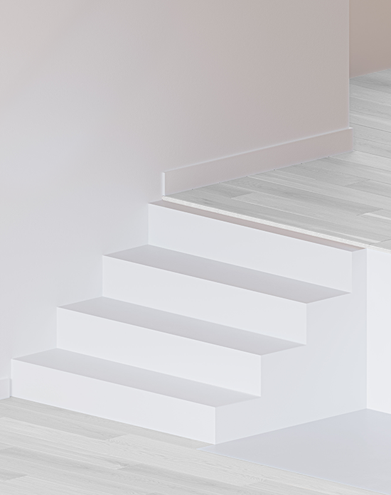 Ensure the nosing thickness on the top step matches your Mirage flooring, whether it's on the main floor or a landing. Choosing TruBalance Lite square stair nosings guarantees a perfect fit with your TruBalance Lite flooring.