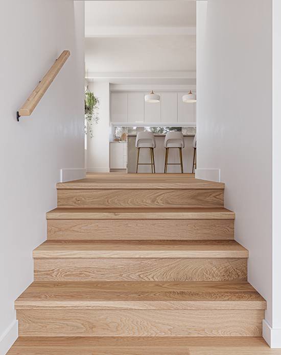 What can you expect from our stair components? A perfect match for your Mirage flooring—from wood species and colour to texture and finish.